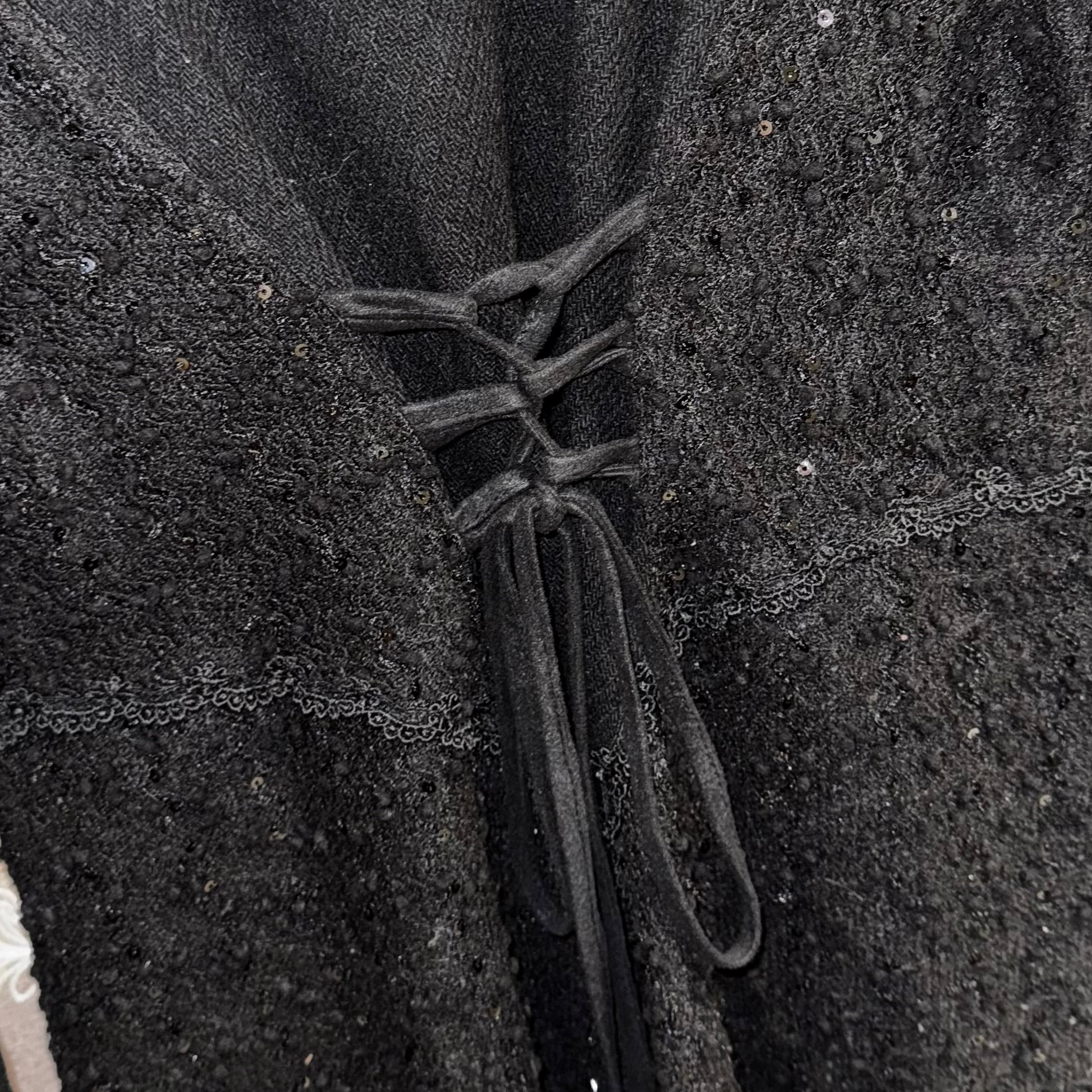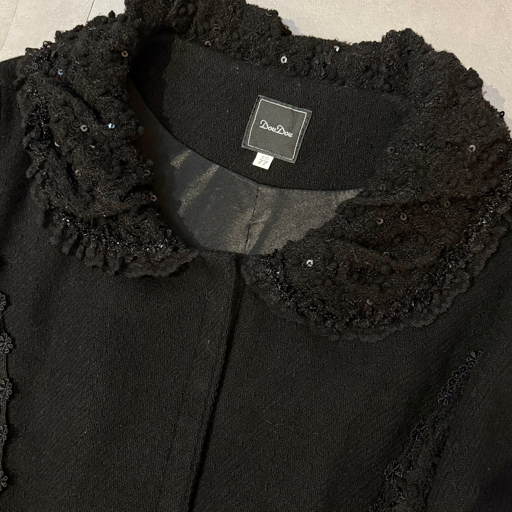 Black lace embroidered long coat