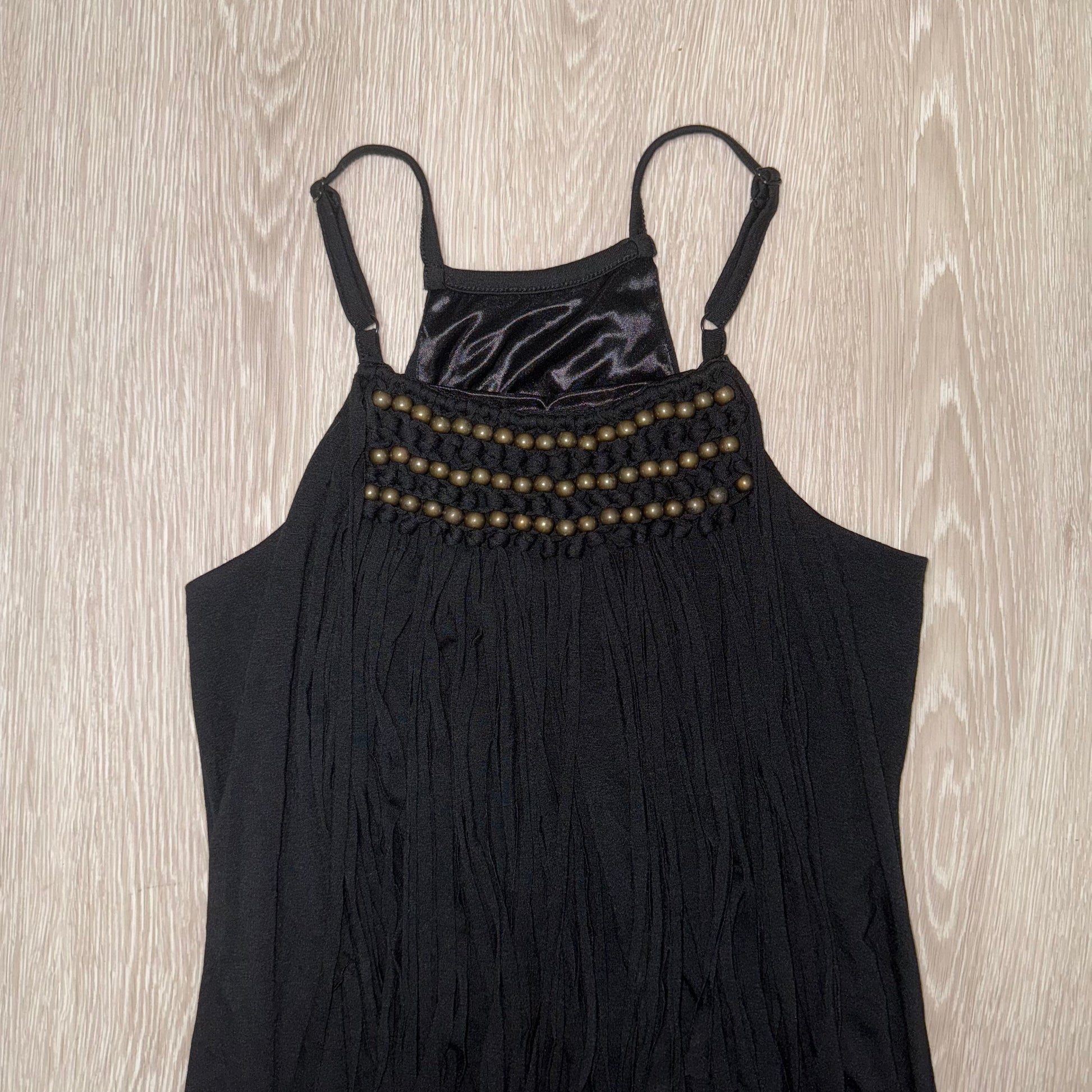 Super cool black rivet fringe dress