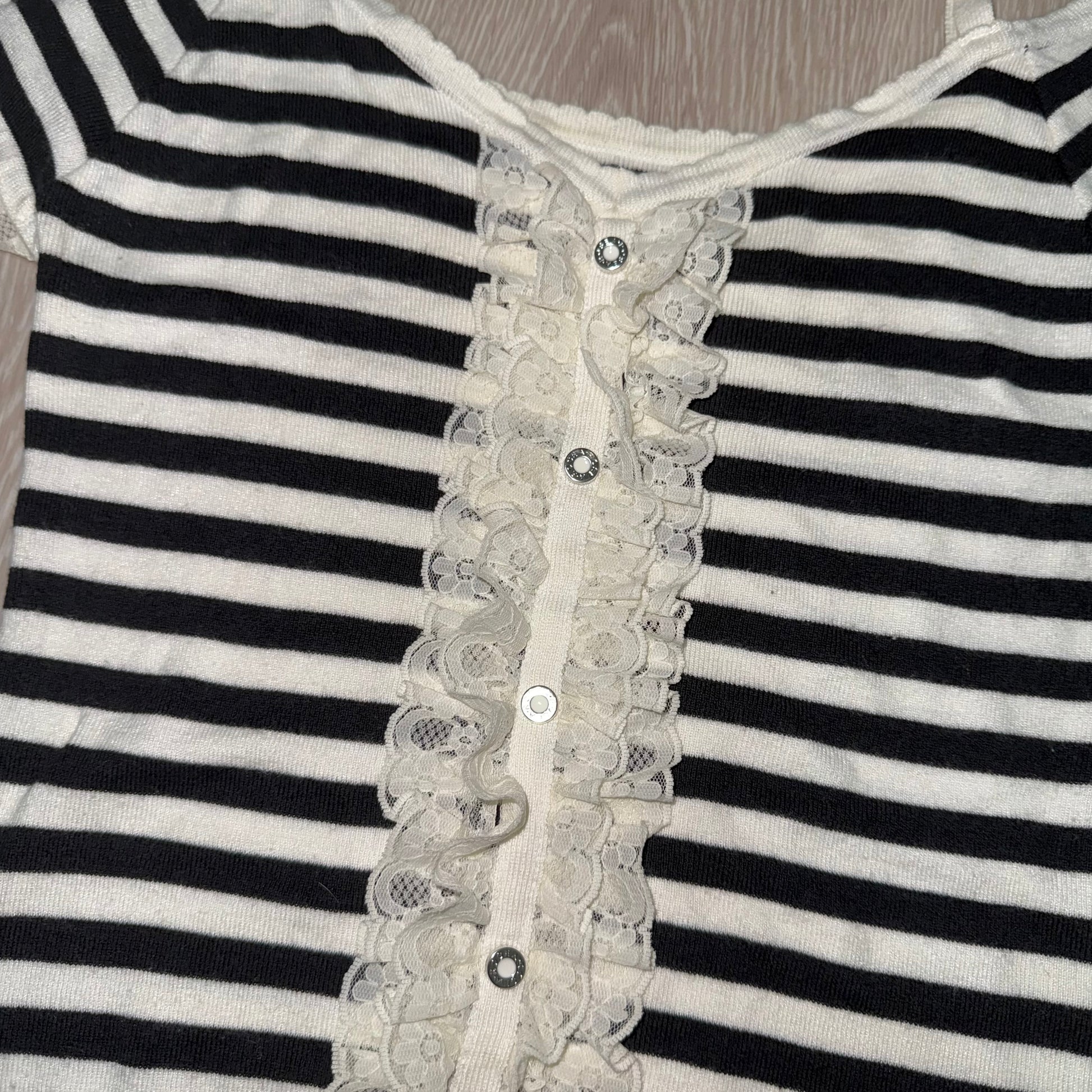 Black white buttons striped lace top