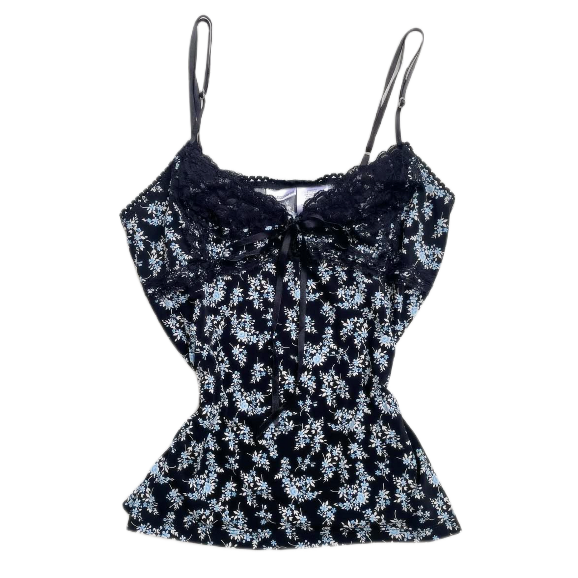 Blue floral black lace tank