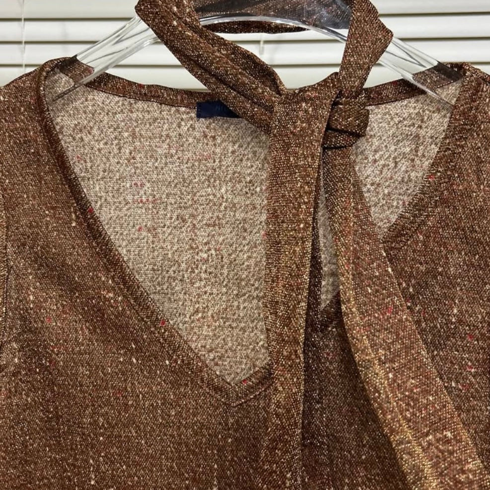 Brown v-neck top with scarf
