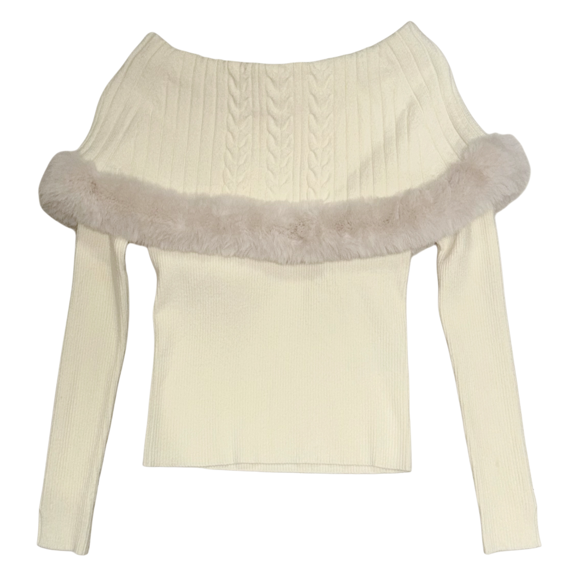 Ivory furry collar knit long sleeve