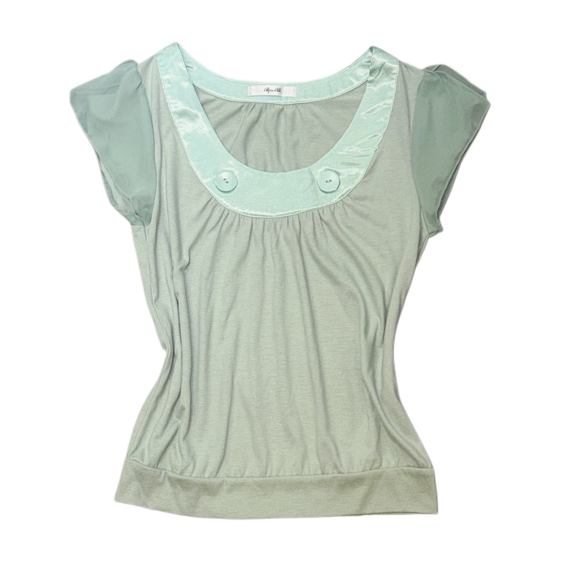 Mint button mesh sleeve top